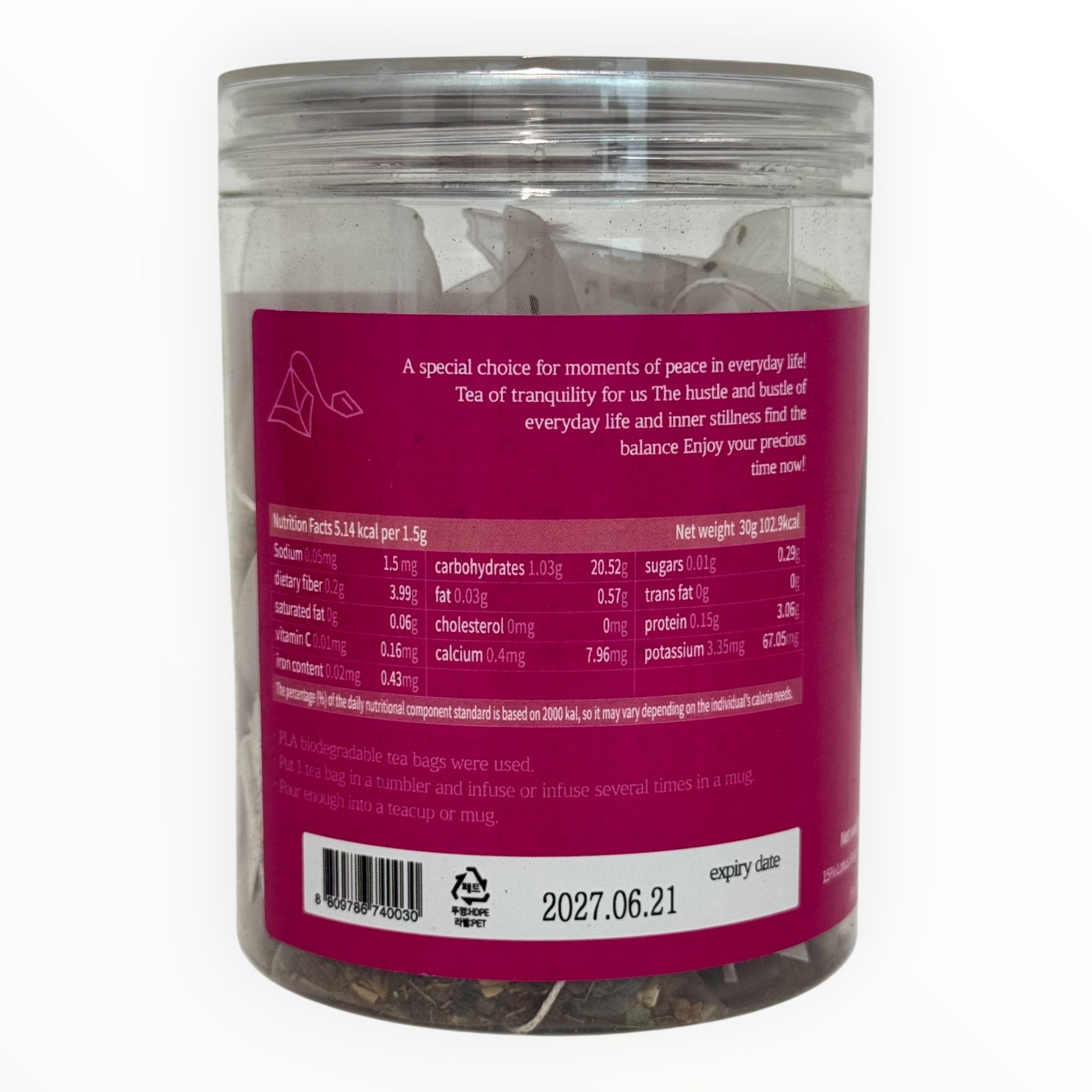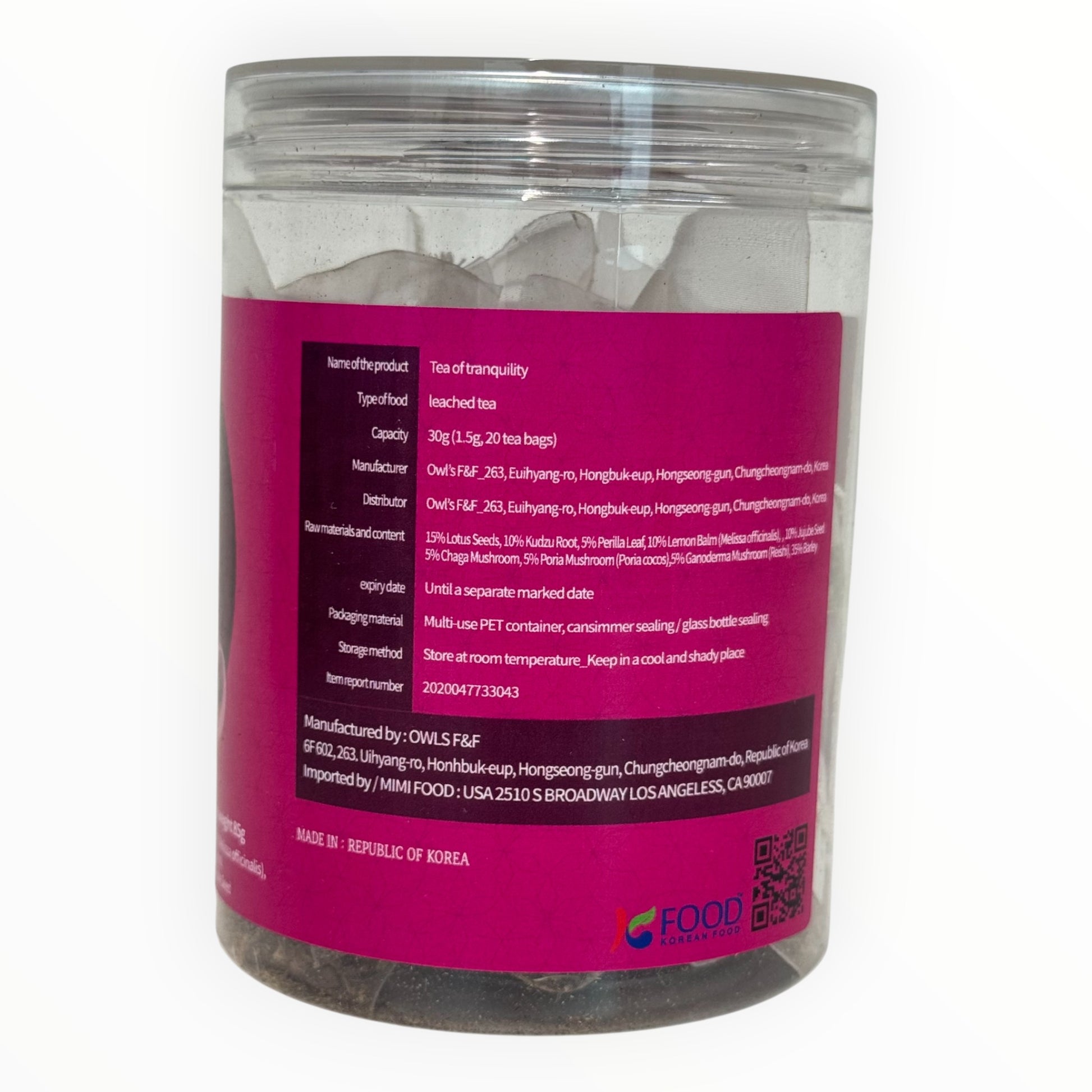 Made with 100% natural ingredients and zero caffeine, Tea of Tranquility helps you relax naturally — no artificial flavors, no added sugars, just pure serenity in every sip.